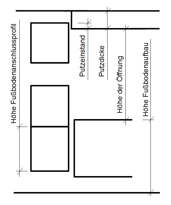 Die Putzdicken und Fussbodenhöhen sind vor Ort zu ermittelt bzw. abzuschätzen.